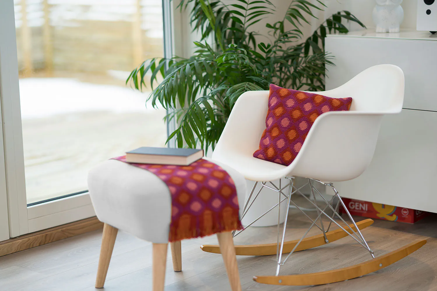 Lag en mønsterheklet pute og matchende løper med Solberg Fiol. Her er hele oppskriften!