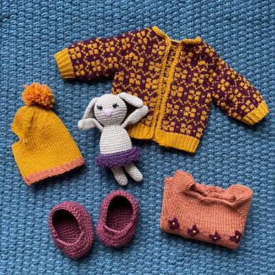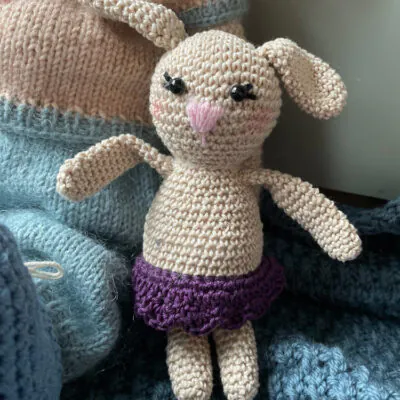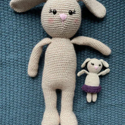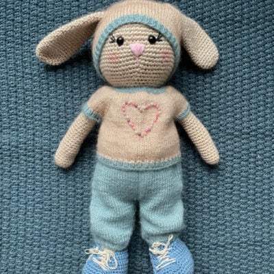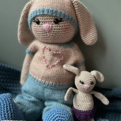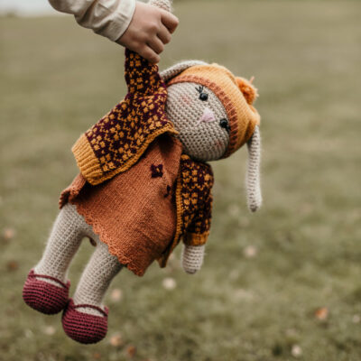 Katrine Kanin kan kles av og på og vil spre glede hos mange små. Hele kaninen er heklet med to tråder Fiol og en tråd Alva. Det blir heklet rundt og rundt, så det er lurt å sette et merke der omgangen begynner. Delene sys sammen til slutt.